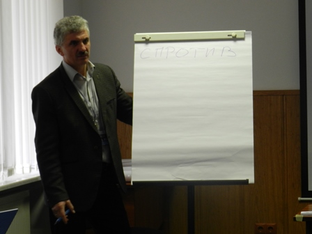 Станіслав Черногор (Громадська організація «Фонд розвитку ініціативи громади», м. Краматорськ, Донецька обл.) - тренінгова сесія «Громадська робота – хобі, що переросла в професію». На сесії Станіслав спонукав учасників до обговорення проблем, що трапляються на шляху громадського діяча. Учасники розповідали про свої досягнення, про те як вони вирішували ту чи іншу ситуацію, що спіткала їх у роботі. Також обговорювалися важливі питання щодо роботи з вимушеними переселенцями.